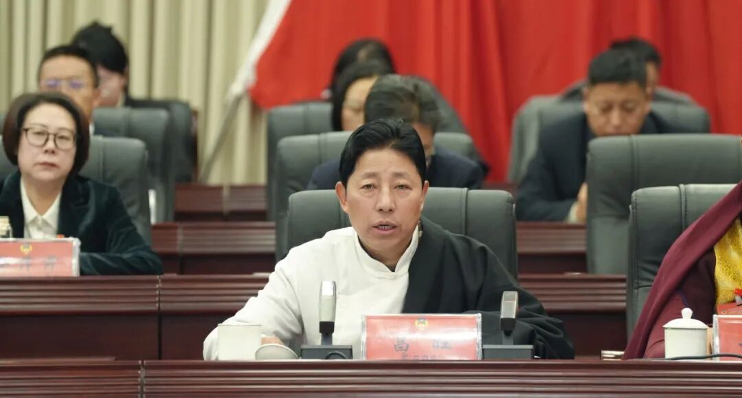 市政协主席昌旺主持闭幕会并讲话。闭幕会执行主席昌旺、嘎西彭措、根让、熊高平、嘎西卓玛在主席台前排就座。